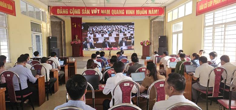 Các đại biểu dự hội nghị tại điểm cầu xã Mường Tè