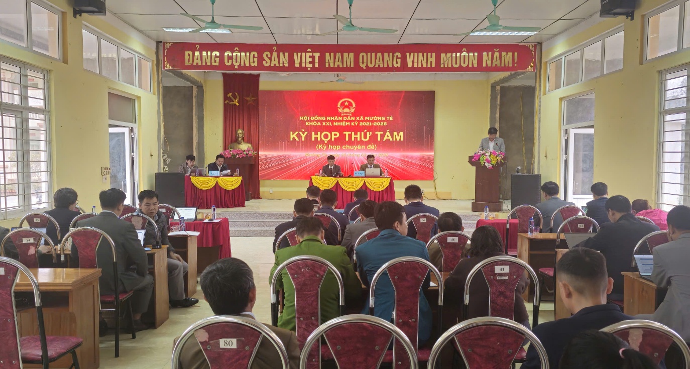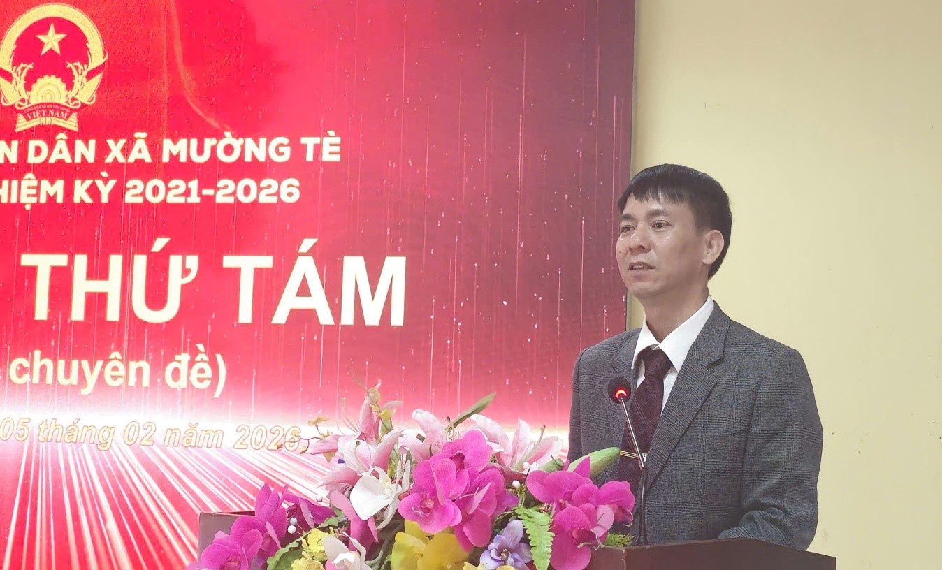 Sáng ngày 5/02/2026, HĐND xã Mường Tè tổ chức Kỳ họp thứ tám, (Kỳ họp chuyên) nhiệm kỳ 2021-2026. Chủ tọa Kỳ họp có đồng chí Nguyễn Đức Thật - Bí thư Đảng uỷ, Chủ tịch HĐND xã; đồng chí Tống Văn Thinh - Phó Chủ tịch HĐND xã.