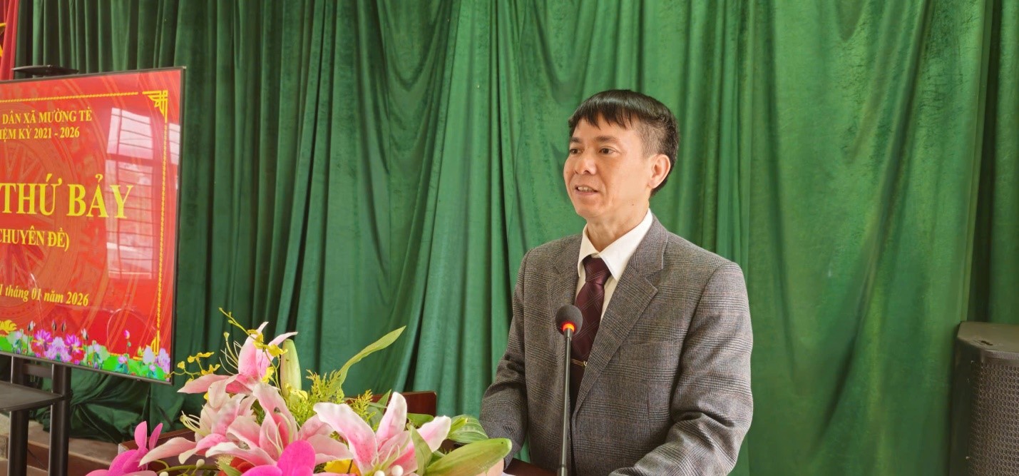 Ngày 21/1/2026, HĐND xã Mường Tè khóa XXI, nhiệm kỳ 2021-2026 tổ chức Kỳ họp thứ Bảy - Kỳ họp chuyên đề để xem xét, quyết định một số nội dung quan trọng thuộc thẩm quyền của HĐND xã, đặc biệt là công tác nhân sự bầu chức danh Chủ tịch UBND xã nhiệm kỳ 2021 - 2026. Đồng chí Nguyễn Đức Thật - Bí thư Đảng ủy, Chủ tịch HĐND xã và đồng chí Tống Văn Thinh - Phó Chủ tịch HĐND xã đồng chủ trì kỳ họp.