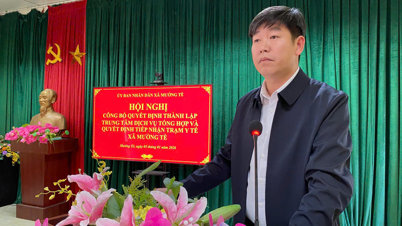 Sáng ngày 05/01/2026, Ủy ban nhân dân xã Mường Tè long trọng tổ chức Hội nghị Công bố các Quyết định thành lập Trung tâm Dịch vụ tổng hợp xã và Quyết định tiếp nhận Trạm Y tế xã Mường Tè.