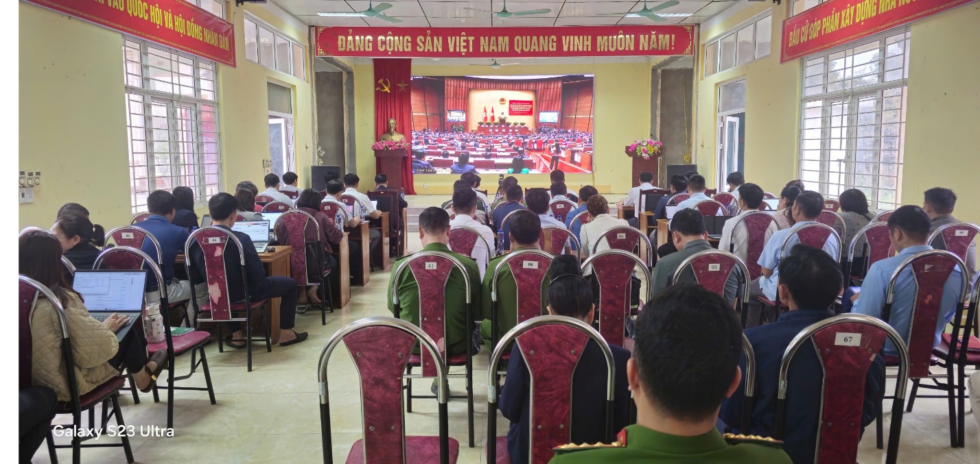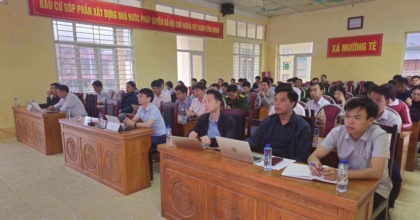 Các đại biểu dự tại điểm cầu xã Mường Tè.