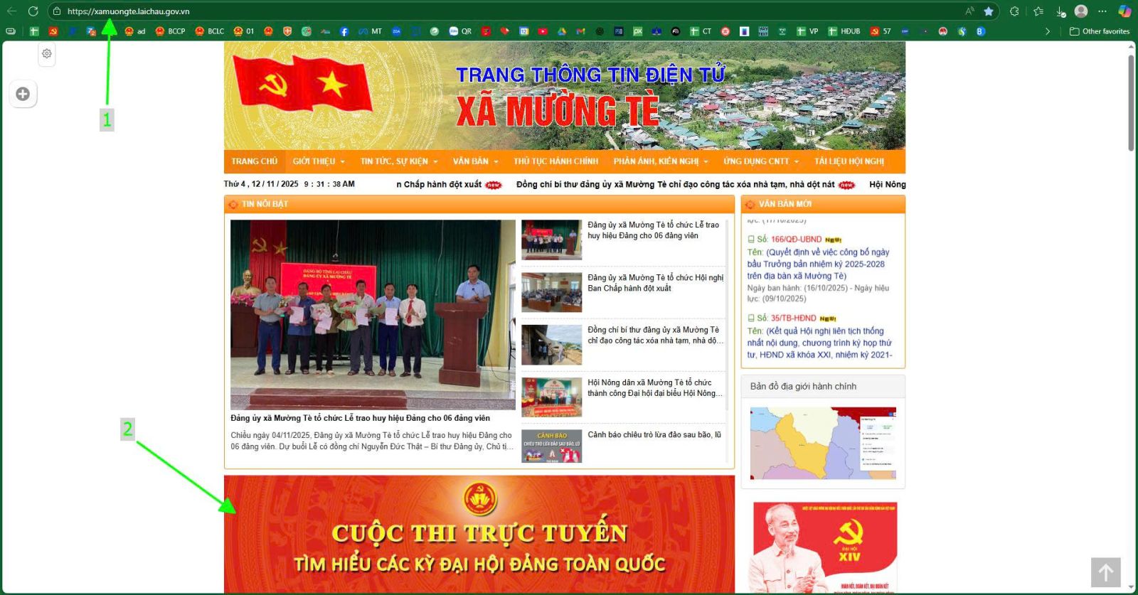 Các đồng chí truy cập vào website của Trang thông tin điện tử xã tiến hành bấm mục số 2