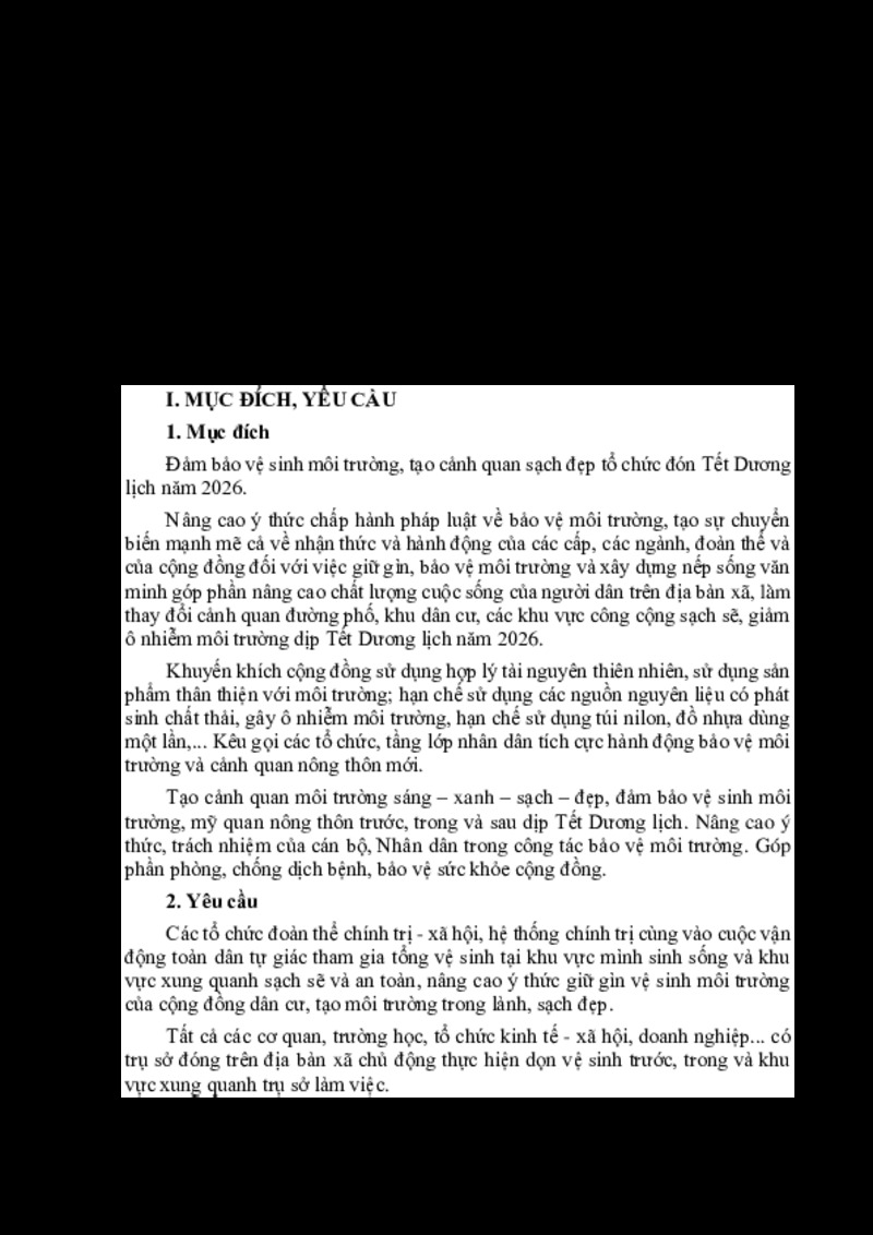| Tiêu đề văn bản | Dọn dẹp vệ sinh môi trường chuẩn bị dịp Tết Dương lịch năm 2026 | ||